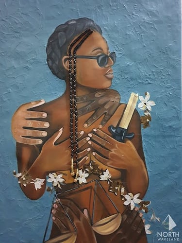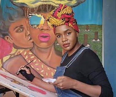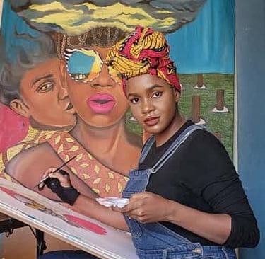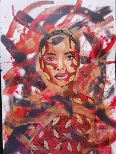 Nukwase Tembo is a Zambian artist based in Lusaka who challenges toxic societal norms and explores the complexities of blackness and women's rights in post-colonial Africa. With a Bachelor of Arts in Fine Arts, she creates mixed media oil paintings and collages that normalize blackness, de-objectify women's bodies, and question how borrowed Western ideals have become rigid cultural standards in fluid